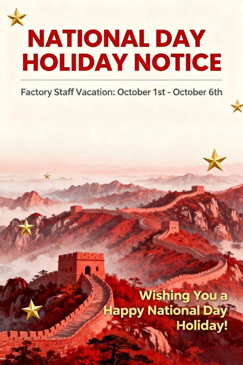 In celebration of China's National Day, our shoe factory and office will be closed from October 1st to October 6th, 2025. Operations will resume as usual on October 7th, 2025.